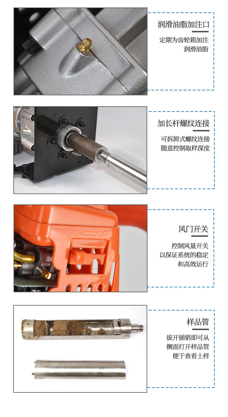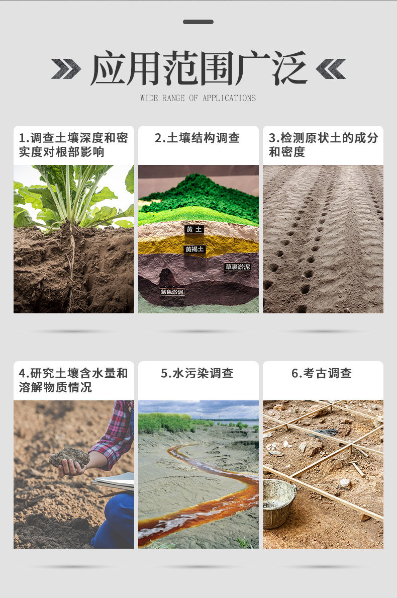 與傳統(tǒng)的手鉆比較,HM-QY800土壤取樣鉆機(jī)鉆取的深度更深、取樣的效率更高,并且取得的是原狀、基本無(wú)擾動(dòng)和壓縮(視地形而定)的土壤樣品。在取樣深度超過(guò)半米、對(duì)土壤樣品的質(zhì)量(原狀、無(wú)擾動(dòng)、無(wú)壓縮)要求較高的項(xiàng)目中,采用該設(shè)備是不錯(cuò)的選擇。